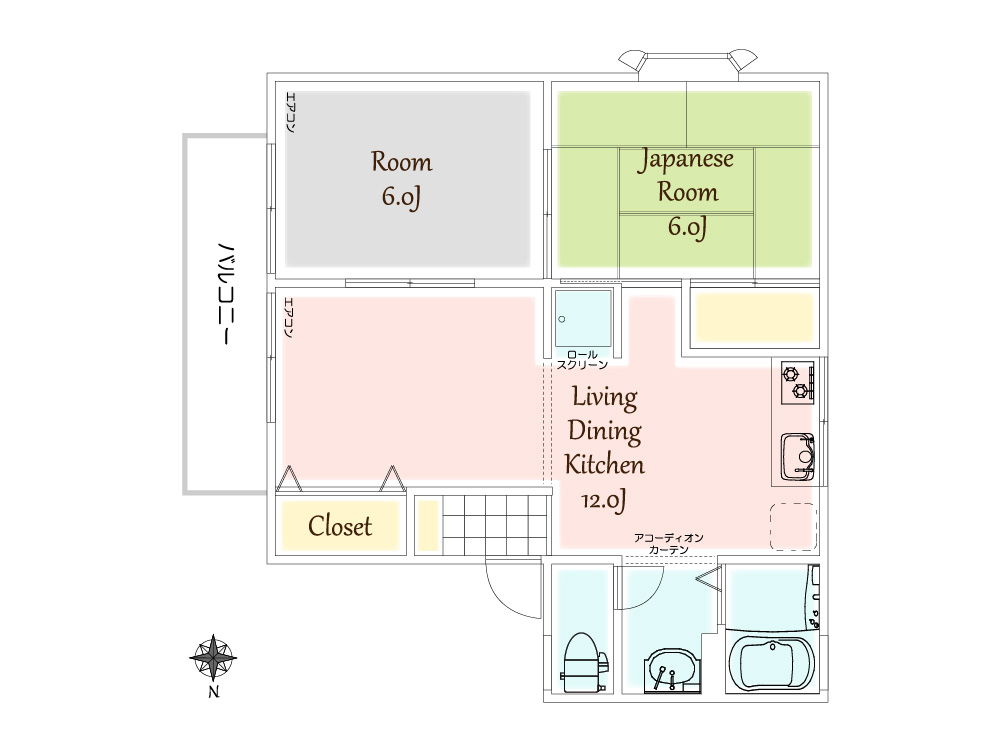 - 公営水道、公共下水、東京電力、プロパンガス、給湯、追焚き、シャワー、バストイレ別、CATV、ウォシュレット、室内洗濯機置場、エアコン2台、洗髪洗面化粧台、システムキッチン(2口コンロ)、TVモニターホン、シューズボックス、ダブルロック、照明、敷地内ゴミ置場有