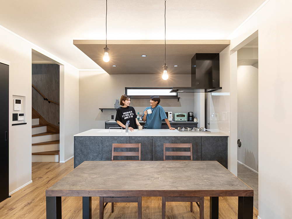 見晴らしのいいオープンキッチンは、料理をしながらお子さんたちを見守ることができ、自然と会話が生まれる場に。